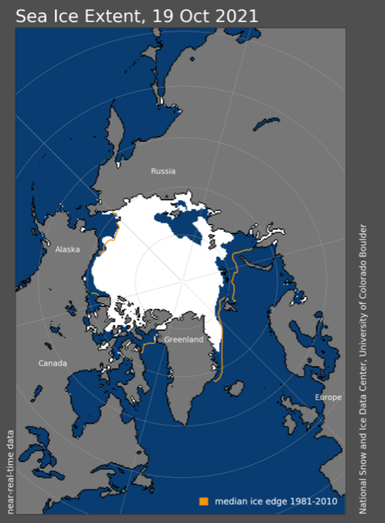 The National Snow and Ice Data Centre, a partner of NASA, reports daily how much the Arctic Sea Ice is melting.