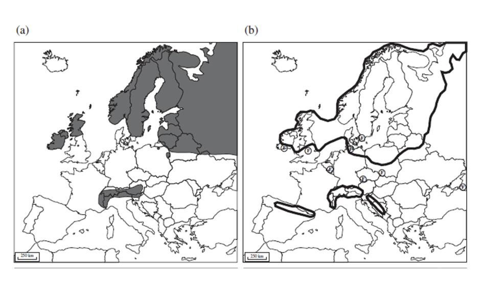 Source: Thulin, C (2003). The distribution of mountain hares (Lepus timidus, L. 1758) in Europe: a challenge from brown hares (L. europaeus, Pall. 1778)?