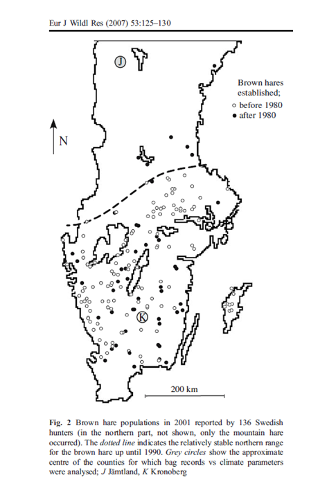 Source: Jansson & Perhson 2007 The recent expansion of the brown hare (Lepus europaeus) in Sweden with possible implications to the mountain hare (L. timidus)