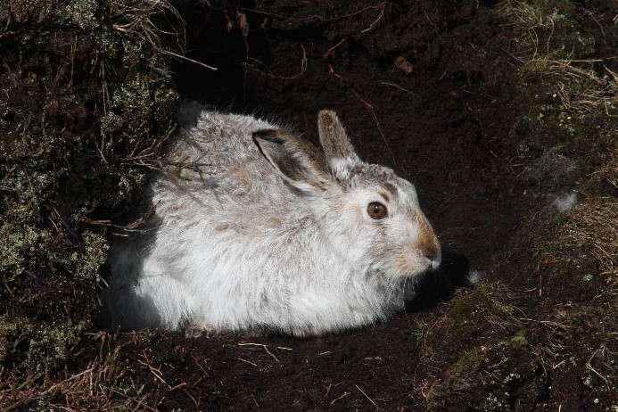Mountain hares benefit from winter-adapted physiology: excellent insulating thick white coats, which allow them to thrive in temperatures down to minus 30 degrees.